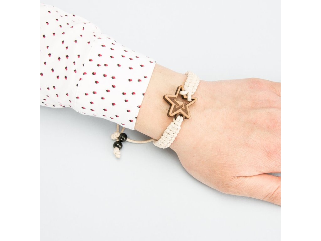 Damenarmband 'Stern' aus Holz mit Kordel wird zu einem großartigen Accessoire für Ihr Outfit.